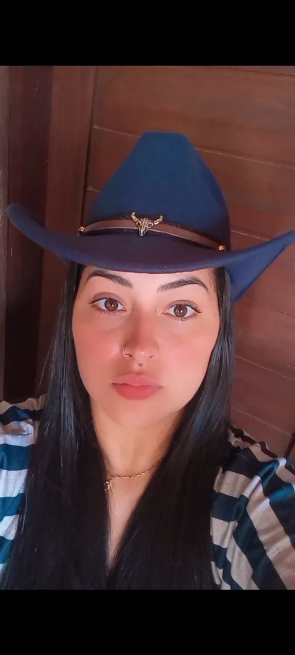 Chapéu country azul escuro com detalhe em metal dourado. Perfeito para compor looks estilosos e autênticos!