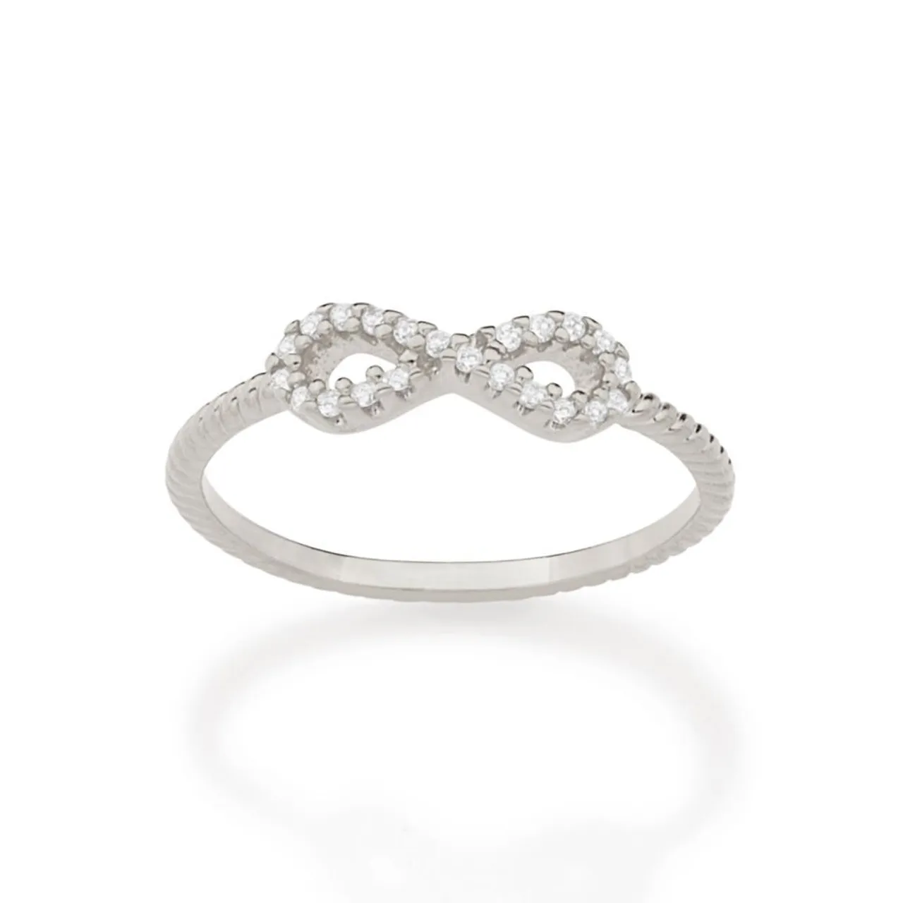 Anel Rommanel com design de infinito cravejado com zircônias, perfeito para adicionar um toque de elegância ao seu visual.