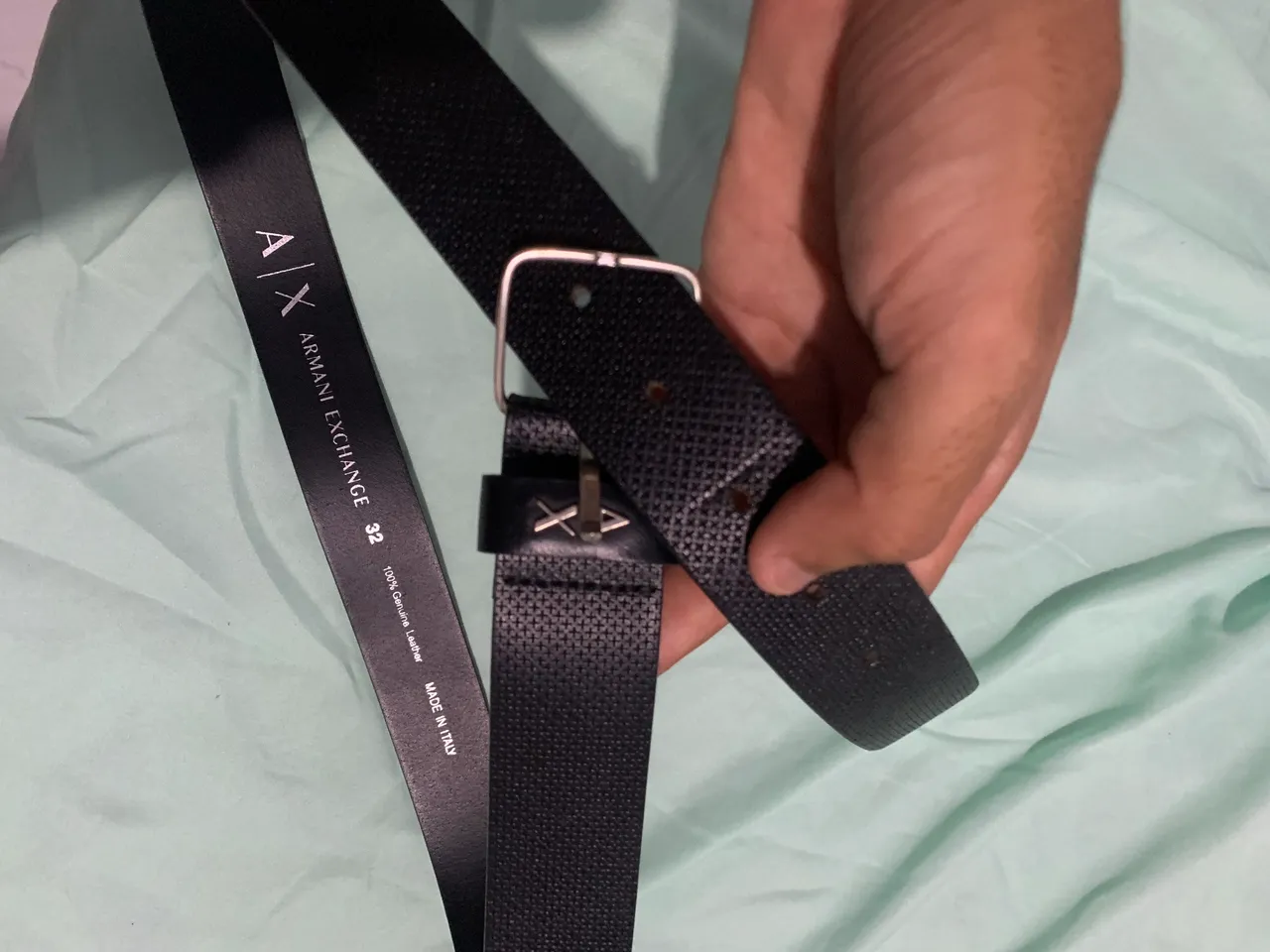 Cinto Armani Exchange original, elegante e sofisticado. Feito com couro genuíno, este cinto é o acessório perfeito para completar seu visual com estilo e qualidade. Tamanho 32