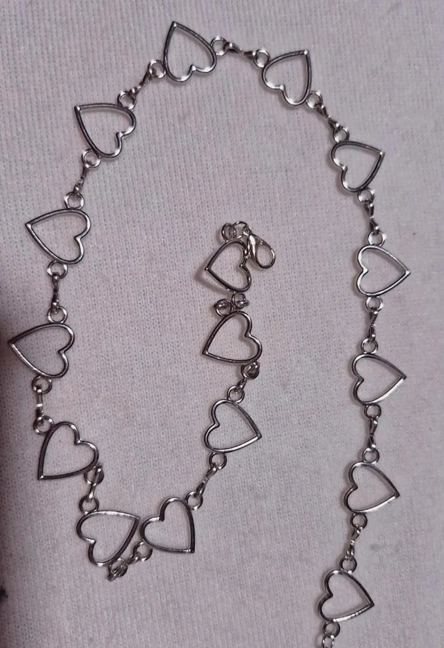 Cinto de corrente com detalhes de corações, perfeito para adicionar um toque romântico e estiloso ao seu look. Ideal para diversas ocasiões, este acessório é a escolha certa para quem busca um toque de charme e personalidade.