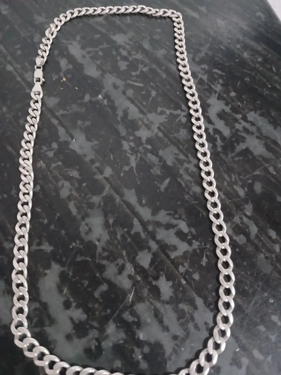 Linda corrente de prata, perfeita para complementar seu visual com elegância e estilo. Uma joia que combina com qualquer ocasião, seja para o dia a dia ou para eventos especiais.