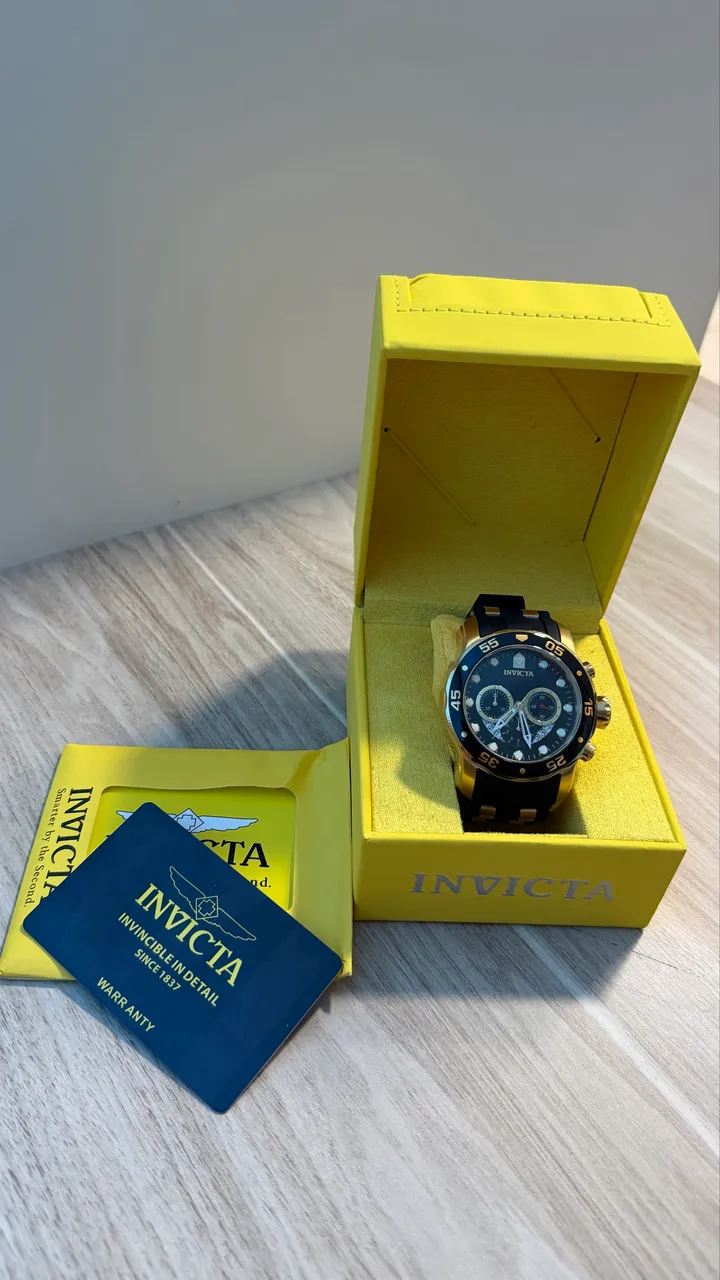 Relógio Invicta: design imponente e alta precisão para você se destacar. Um acessório que combina estilo e funcionalidade, perfeito para completar seu visual com elegância. Usado apenas uma vez, sem nenhuma marca de uso. Tampa traseira ainda com plástico de proteção.