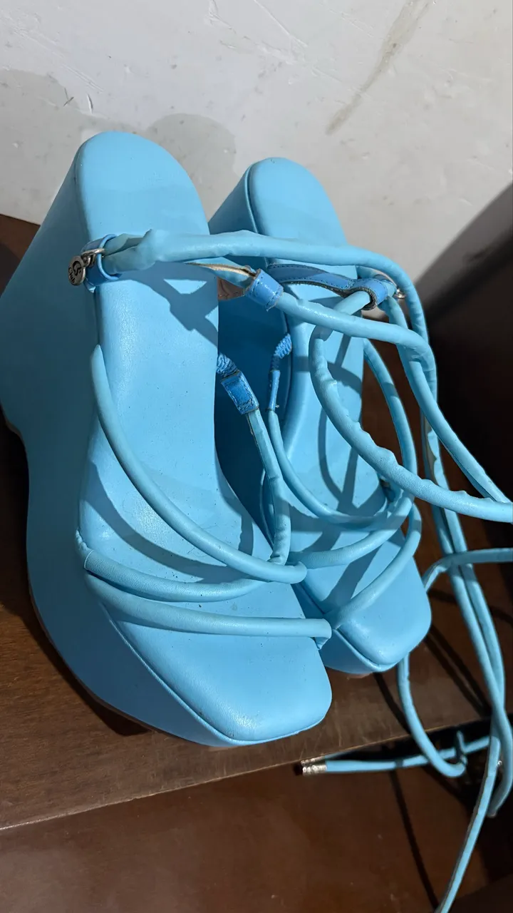 Salto azul vibrante, perfeito para um visual moderno e estiloso. Design elegante e confortável para você arrasar!