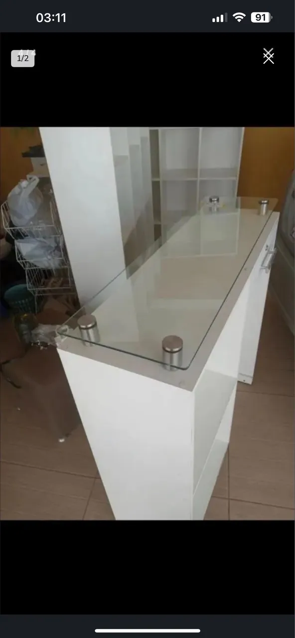 Balcão moderno e elegante, perfeito para diversos ambientes. Design clean e sofisticado, com acabamento impecável e detalhes em vidro. Valor de 550,00 mais deixo por 450