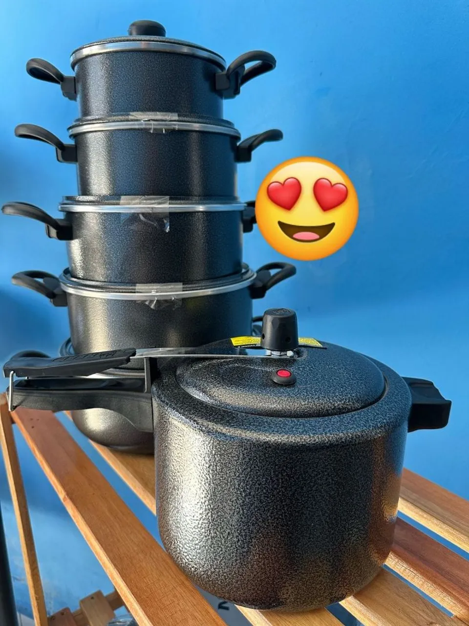 Jogo de panelas e panela de pressão. ideal para sua cozinha. Com design moderno e material de alta qualidade, este conjunto é perfeito para preparar suas receitas com praticidade e segurança.