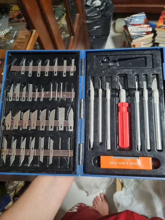 Kit completo de facas para hobby e artesanato, com lâminas de diferentes tamanhos e formatos para atender às suas necessidades. Ideal para trabalhos de precisão, corte de papel, tecido, couro e muito mais.