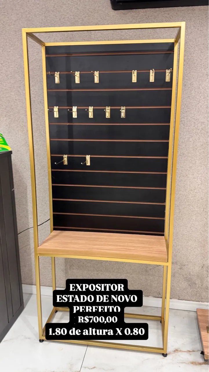 Expositor de acessórios perfeito para sua loja! Design moderno e elegante, ideal para destacar seus produtos. Dimensões: 1.80m de altura x 0.80m. Adicione um toque de sofistica ção ao seu espaço!