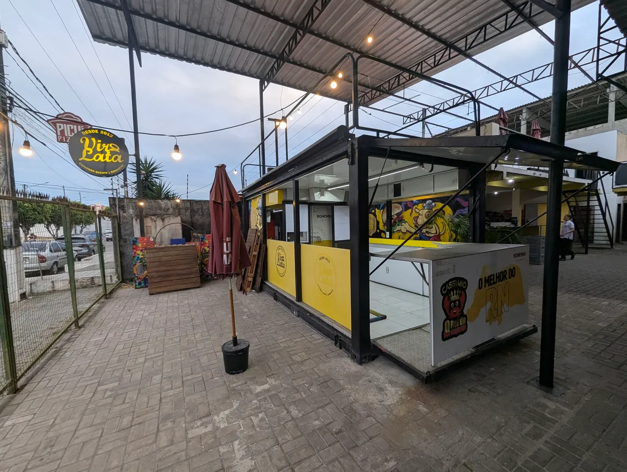 Container ideal para montar seu negócio de alimentação! Estrutura resistente com mesanino na parte de cima e design moderno para atrair seus clientes. Perfeito para food trucks, lanchonetes e muito mais. Invista no seu sucesso!