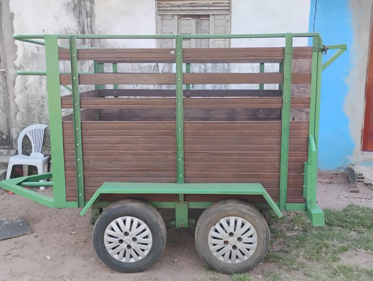 Reboque de dois eixos, ideal para transporte de cargas diversas. Estrutura resistente e design prático para facilitar o uso. Perfeito para suas necessidades de transporte!