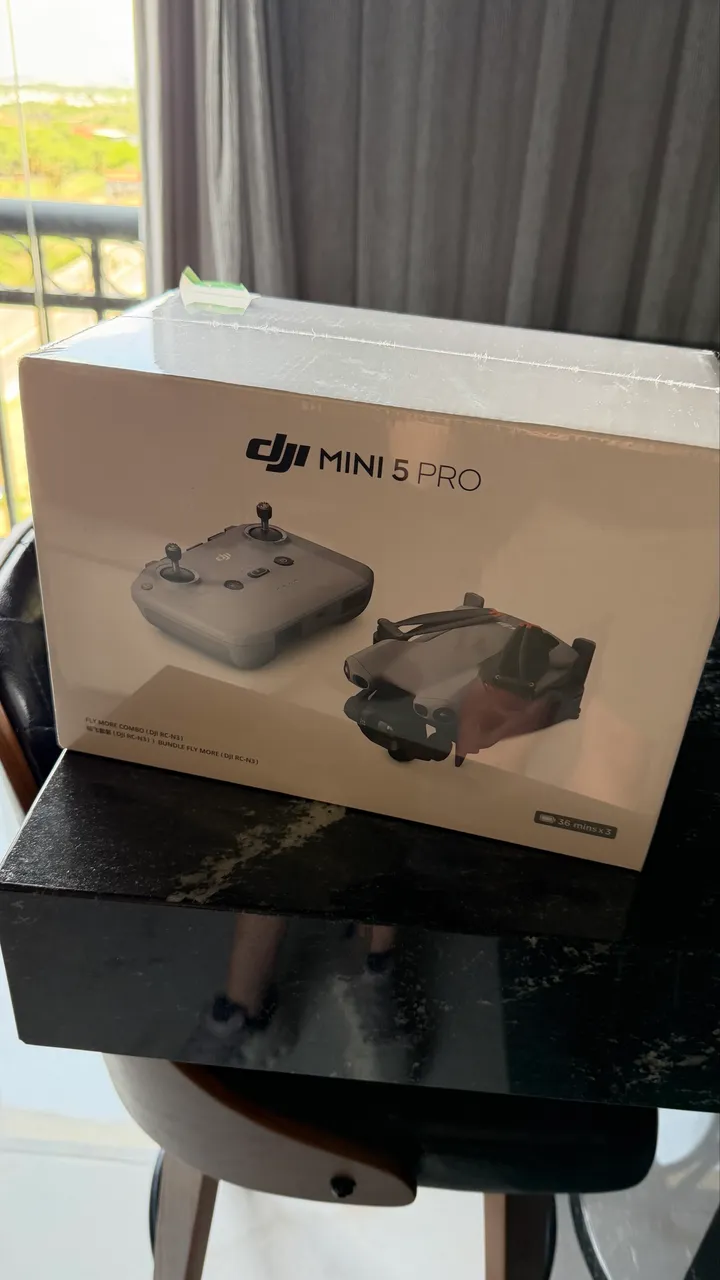 Conteúdo da embalagem: 1 DJI Mini 5 Pro, 1 Controle remoto sem tela DJI RC-N3, 1 Cabo do controle remoto USB-C, 1 Cabo controle remoto Lightning, 3 Baterias de Voo Inteligente DJI Mini 5 Pro (36