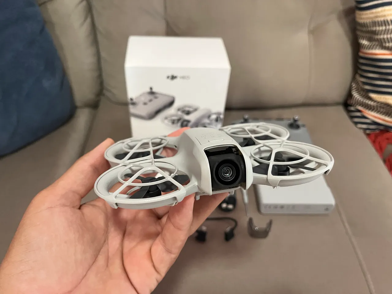 Decola e pousa na palma da mão, sem necessidade de controle remoto, ideal até para iniciantes.