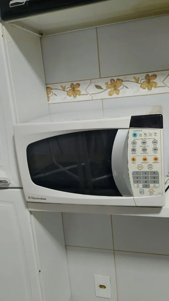 Microondas Electrolux com defeito. Ideal para quem busca conserto ou aproveitamento de peças. Design moderno e funcional, perfeito para sua cozinha.