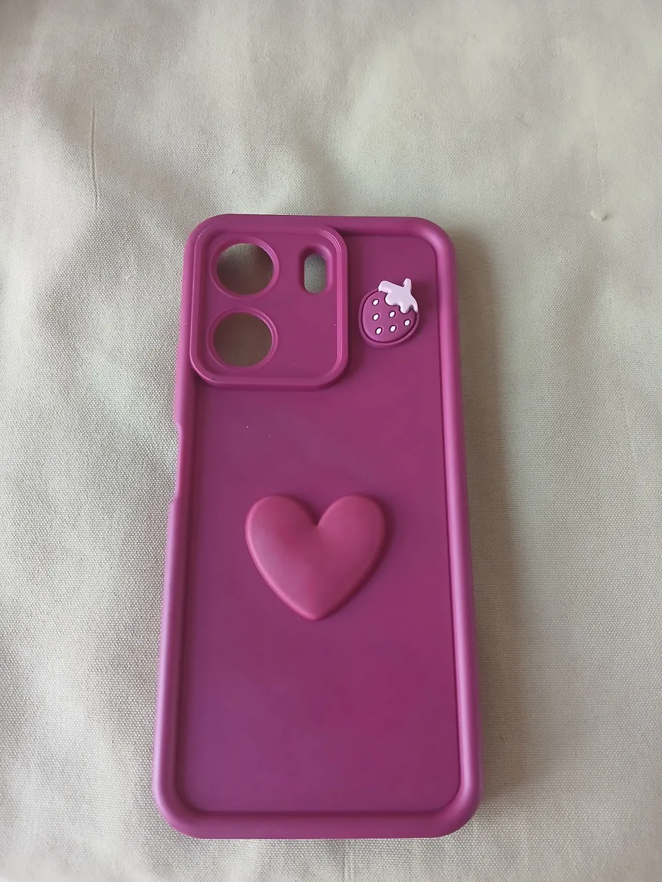 Linda capinha rosa com design de morango e coração. Perfeita para proteger seu celular com estilo e delicadeza! Esta com umas pequenas manchinhas, mas informações entrar em contato no adm