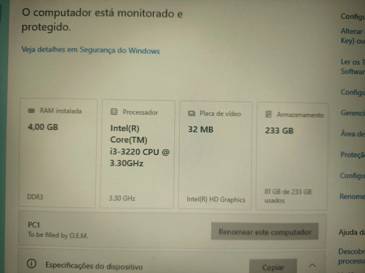 Processador Intel Core i3-3220 16GB de ram 128GB SSD Placa de vídeo GTX 550TI 2GB (Na imagem tem 4gb mas o Pc vai com 16gb).