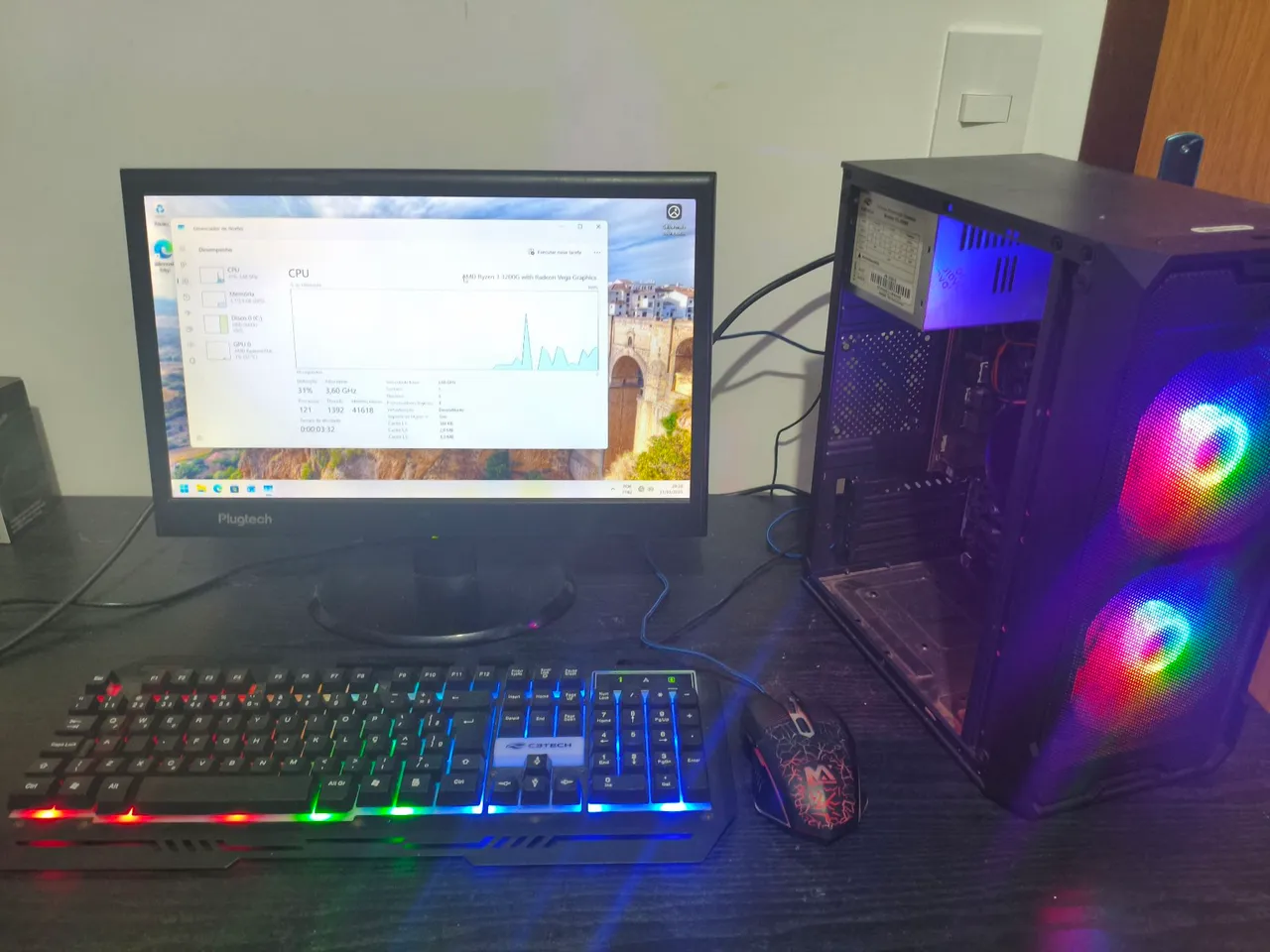 Pc gamer Ryzen 3 3200g completo com monitor de 19 mouse e teclado gamer