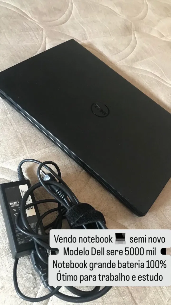 Notebook Dell série 5000, ideal para trabalho e estudo. Bateria de longa duração para te acompanhar em todos os momentos.