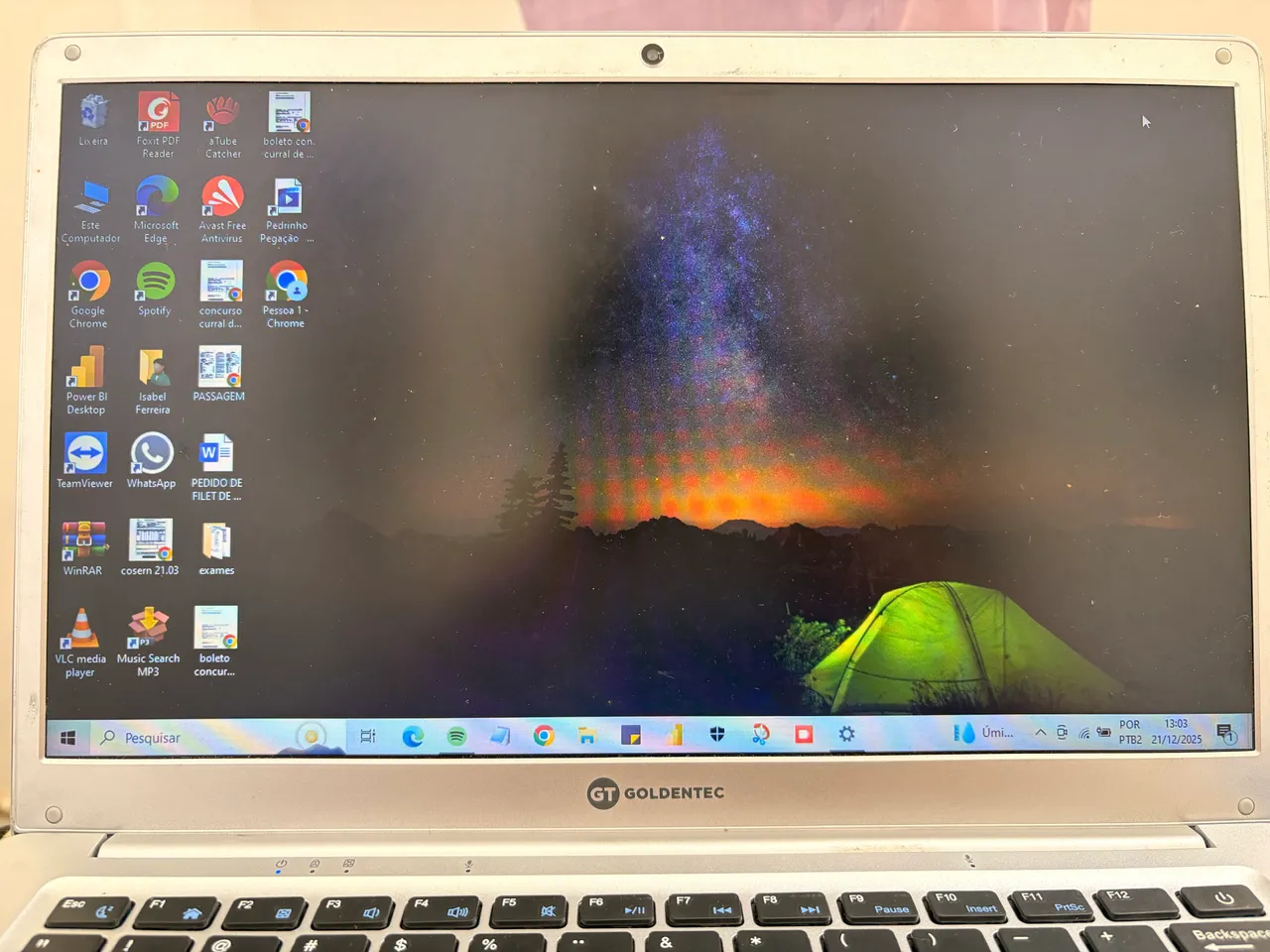 Notebook Goldentec, modelo básico ideal para uso do dia a dia, excelente para estudo. Em perfeito estado, apenas com alguns arranhões na parte de baixo, bateria 100% e acompanha carregador.