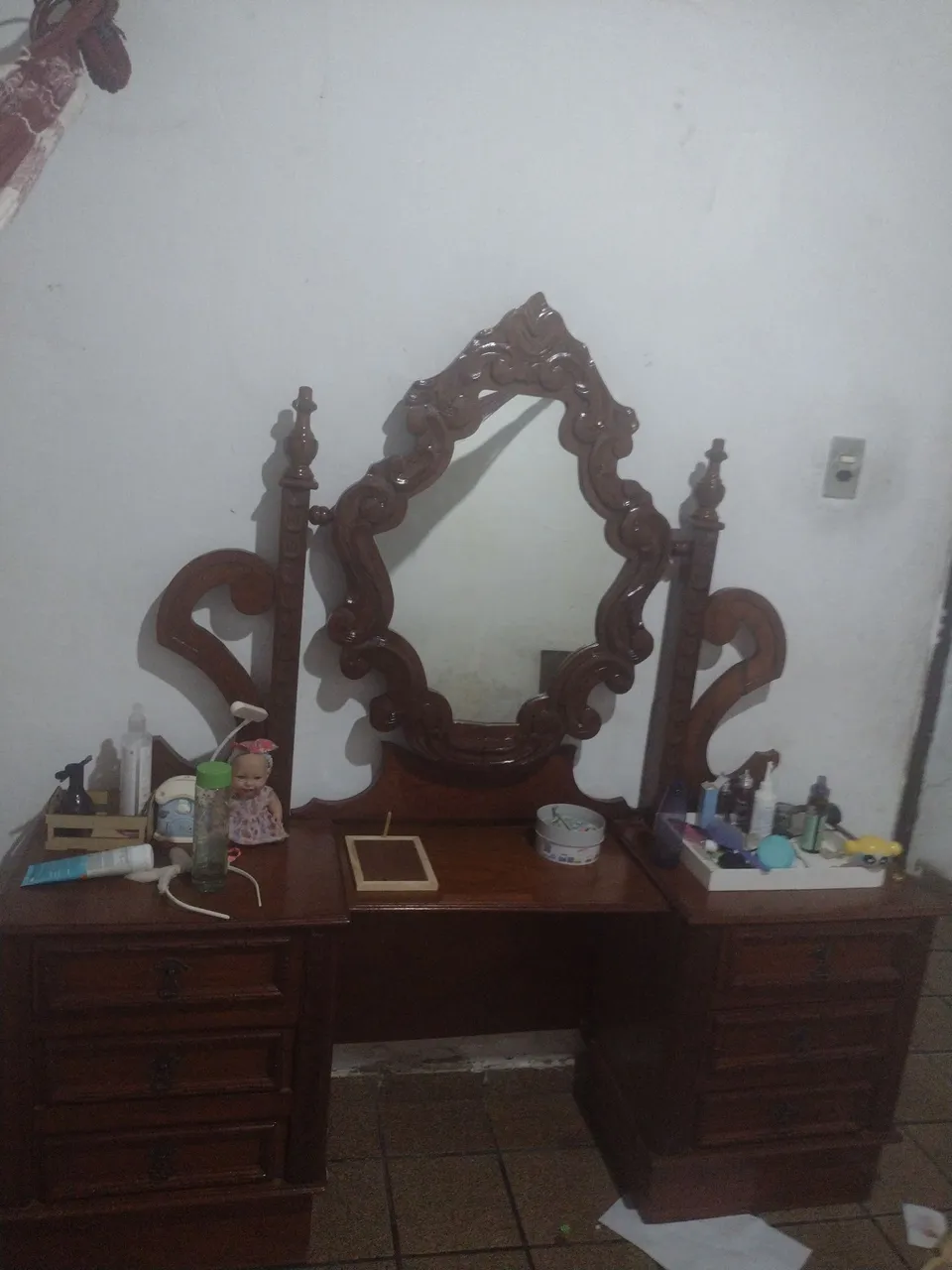 Linda penteadeira de madeira. . Design clássico e elegante