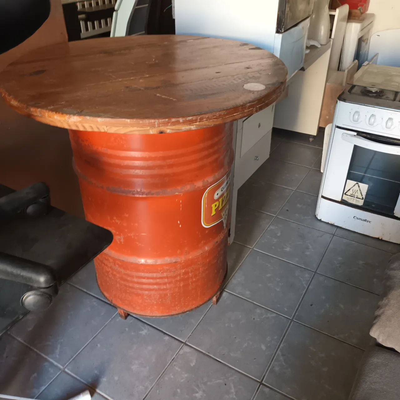 Linda mesa de madeira com base em barril, ideal para dar um toque rústico e estiloso ao seu ambiente. Perfeita para áreas de lazer, cozinhas ou espaços gourmet, combinando funcionalidade e design único. 220,00 aceitamos cartão contato 9990... ver número