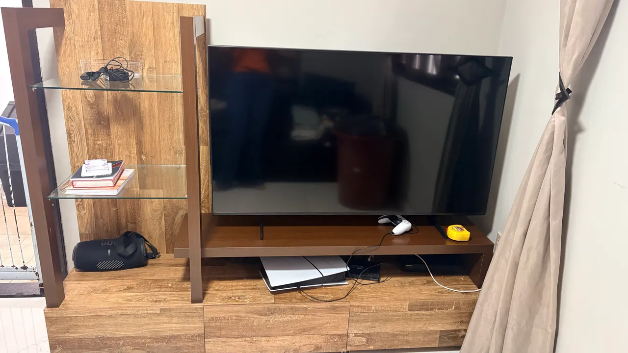 Transforme sua sala com este rack elegante e funcional! Design moderno, com amplo espaço para sua TV, eletrônicos e objetos de decoração. Perfeito para organizar e valorizar seu ambiente.