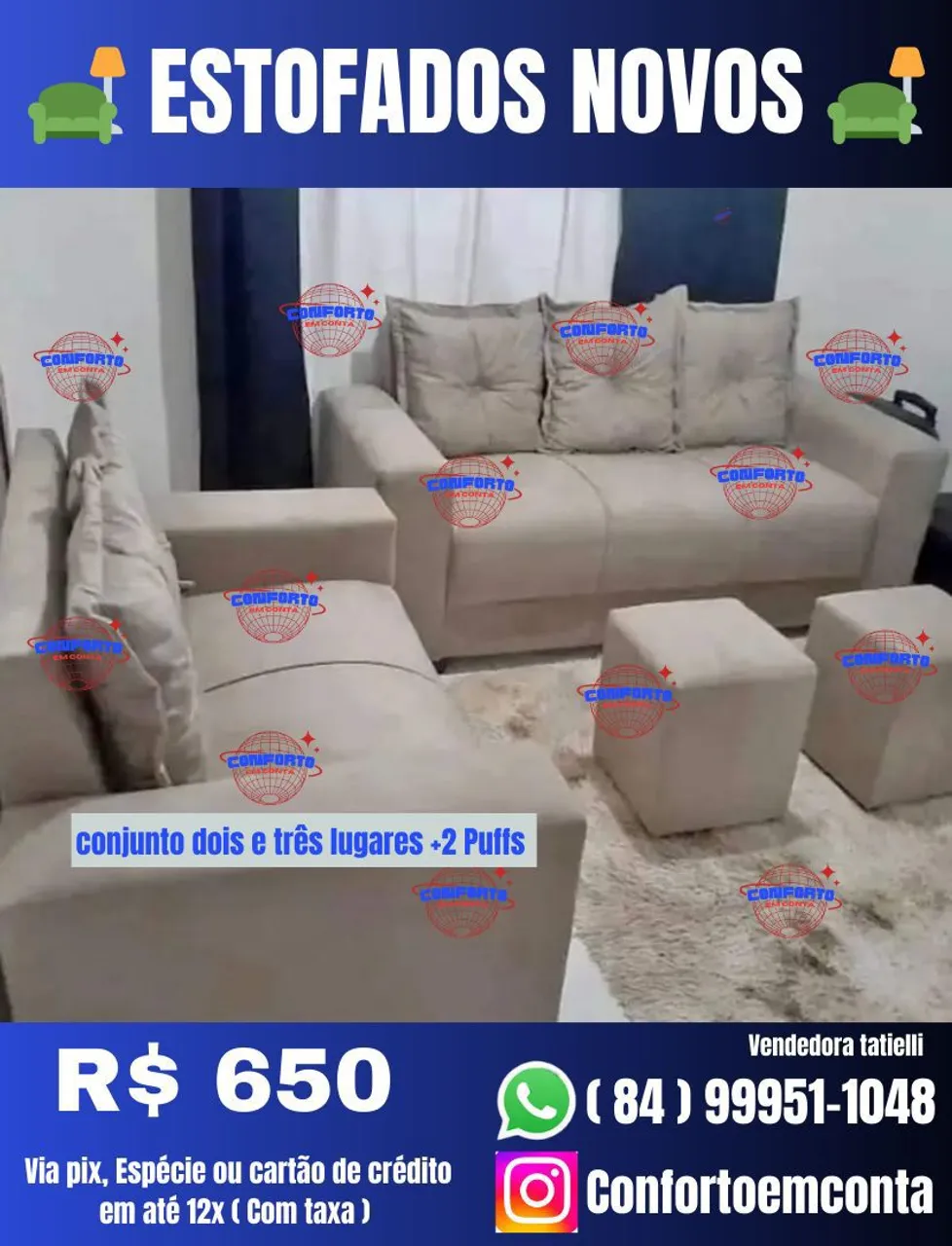 Conjunto de Sofás 2 e 3 Lugares com 2 Puffs- Diretamente da fábrica