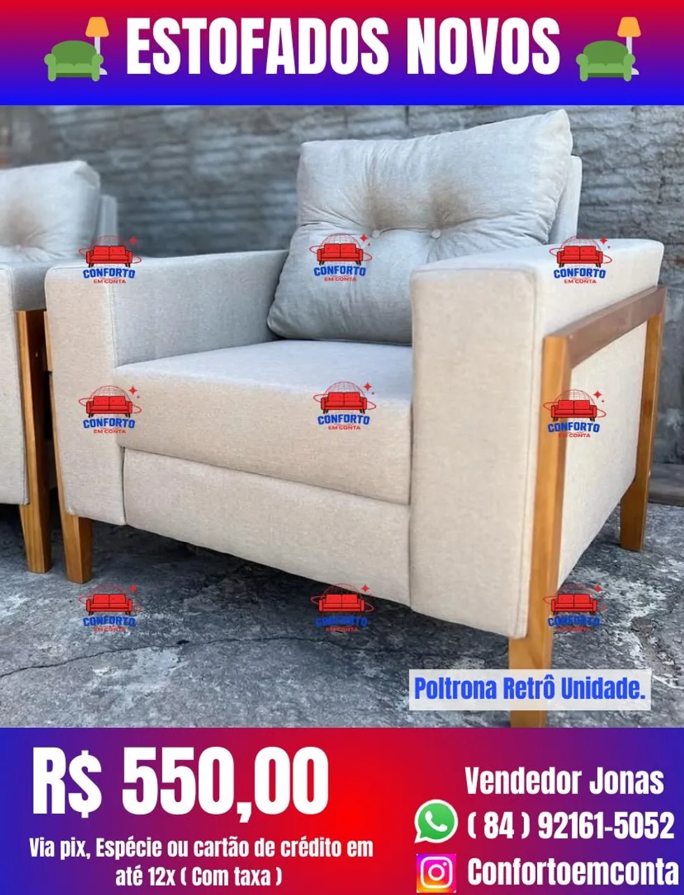 Apresentamos a Poltrona Retrô, um item que combina conforto e estilo para transformar seu ambiente. Com design elegante e detalhes charmosos, ela é perfeita para relaxar e dar um toque de sofisticação à sua casa. Adquira já a sua!