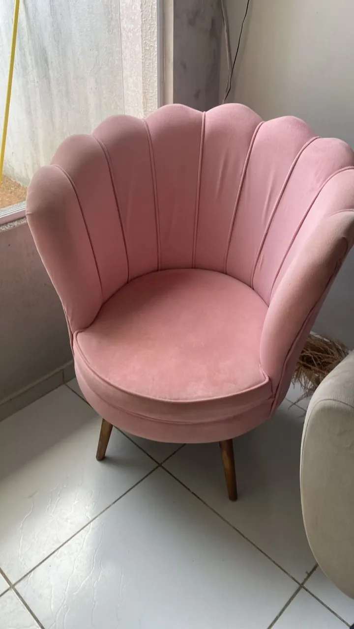 Linda poltrona rosa, perfeita para dar um toque de charme e elegância ao seu ambiente. Design moderno e confortável, ideal para relaxar e decorar.