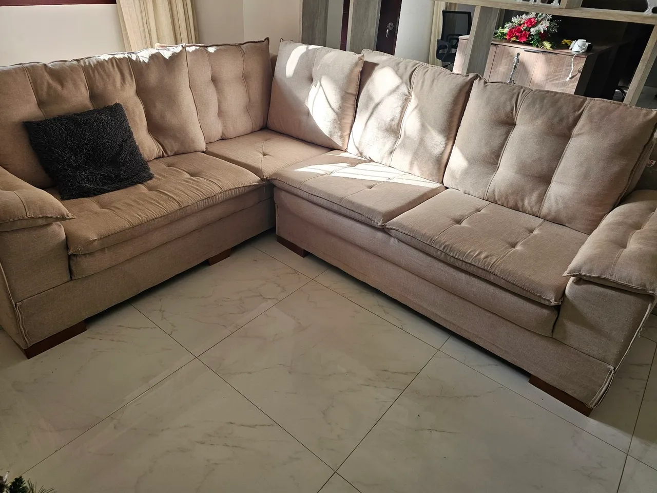 Aconchego e elegância para sua sala! Apresentamos um sofá de canto em L, perfeito para otimizar seu espaço e proporcionar momentos de relaxamento. Design moderno e confortável, ideal para reunir a família e amigos.