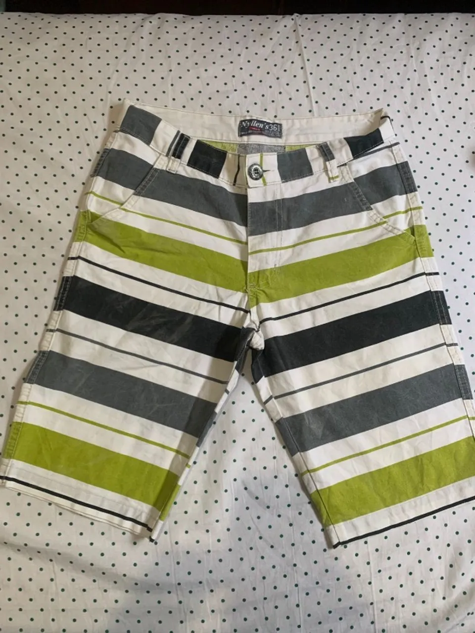 Bermuda listrada, nas cores verde, preto, cinza e branco, peça usada poucas vezes em ótimo estado