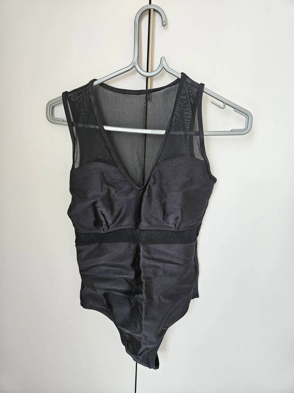 Body preto com design moderno e elegante, perfeito para diversas ocasiões. Detalhes em tela que adicionam um toque de sofisticação e sensualidade. Conforto e estilo em uma só peça!
