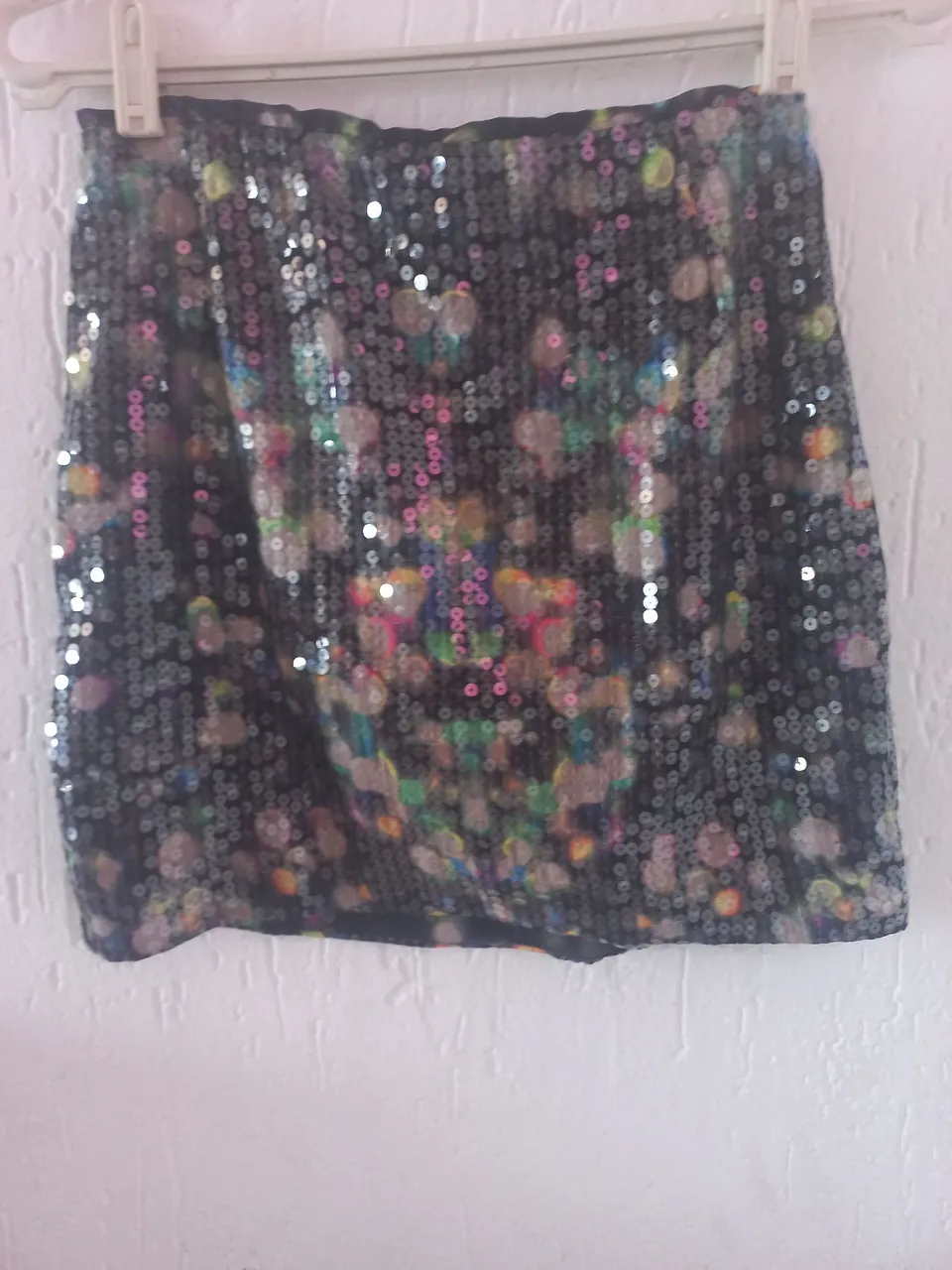 Linda saia com aplicações de paetês, perfeita para um look moderno e estiloso. Brilhe em qualquer ocasião com essa peça única!