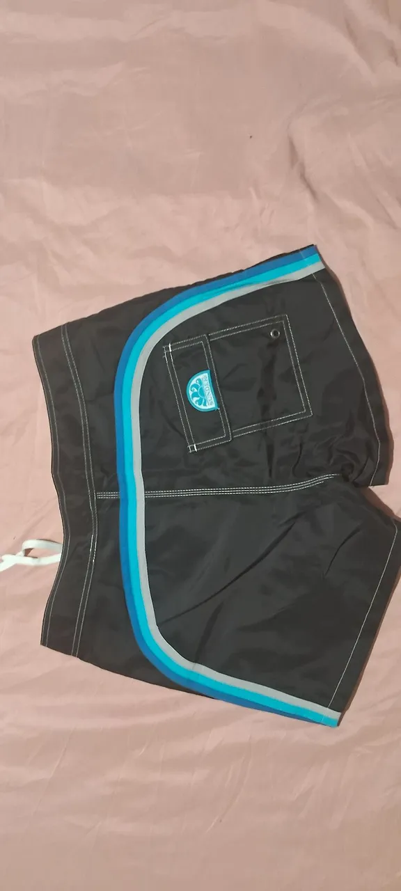 Bermuda masculina da marca Sundek, ideal para praia, piscina ou dia a dia no verão. Modelo clássico na cor preta, com costuras reforçadas em branco e detalhe lateral em azul e branco, trazendo um visual moderno e esportivo.