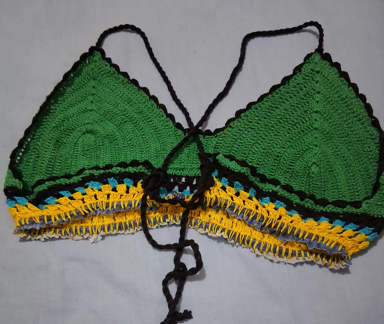 Lindo top de crochê feito à mão, perfeito para um visual estiloso e confortável. Com design exclusivo e cores vibrantes, este top é a peça ideal para você arrasar em qualquer ocasião!