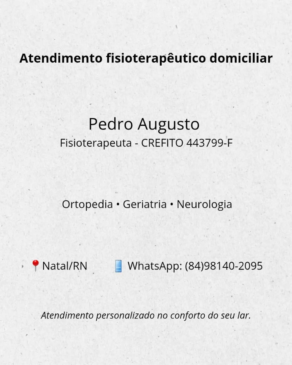 Áreas atendidas: Geriatria, Ortopedia e Neurologia (pós AVC);